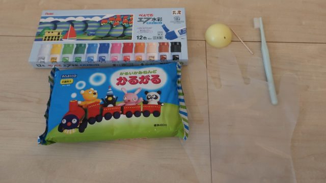 使い捨て手袋は、手に絵の具がついてしまうのであれば便利です。ちなみに、手袋はサラサラとしたエンボス加工がしっかりとされていたものの方が作業しやすいです。