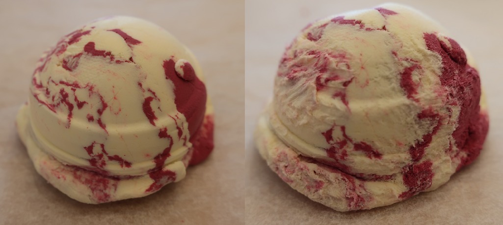 左側がブラッシングなし、右側がブラッシングありになります。左側でも十分な完成度に見えますが、歯ブラシで表面をゴシゴシするだけで本物のアイス感が出るのが分かりますでしょうか。